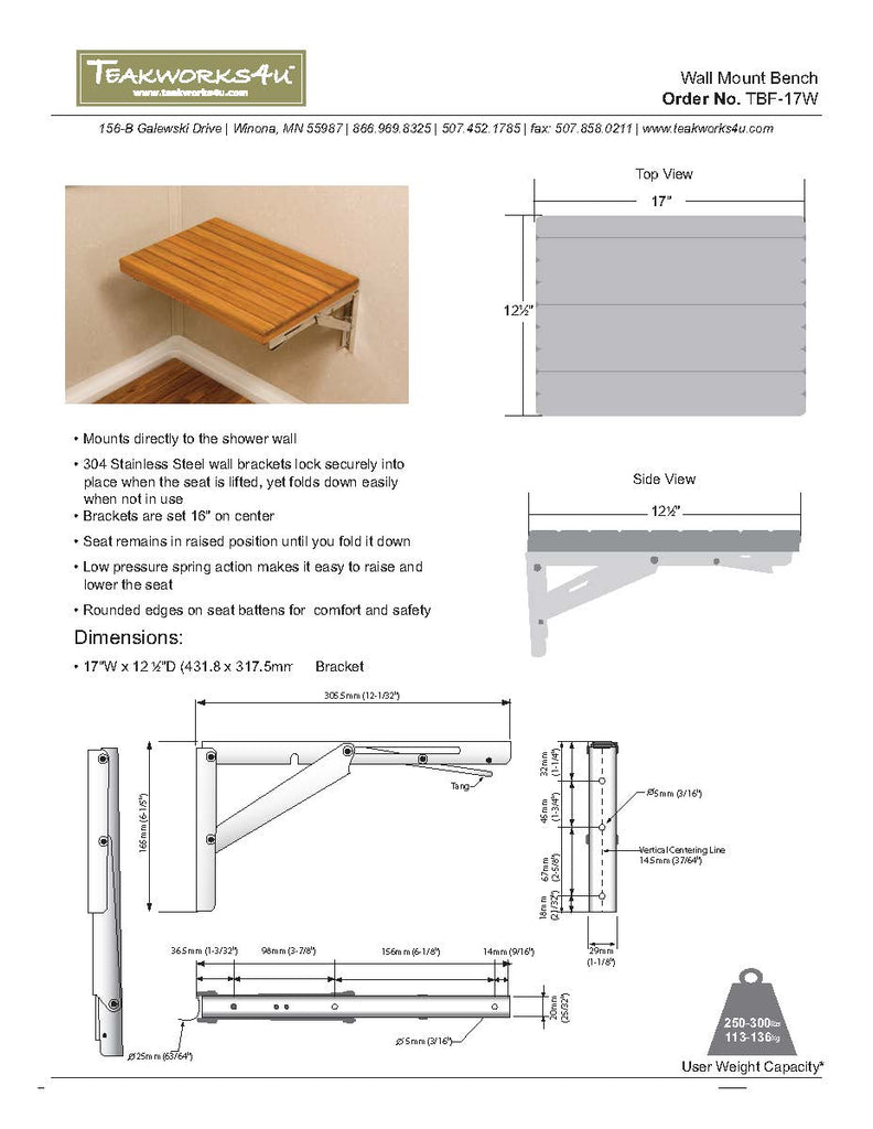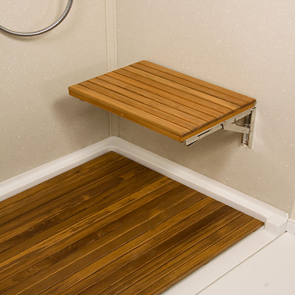 17" Wide Teak Wall Mount Fold Down Teak Shower Seat