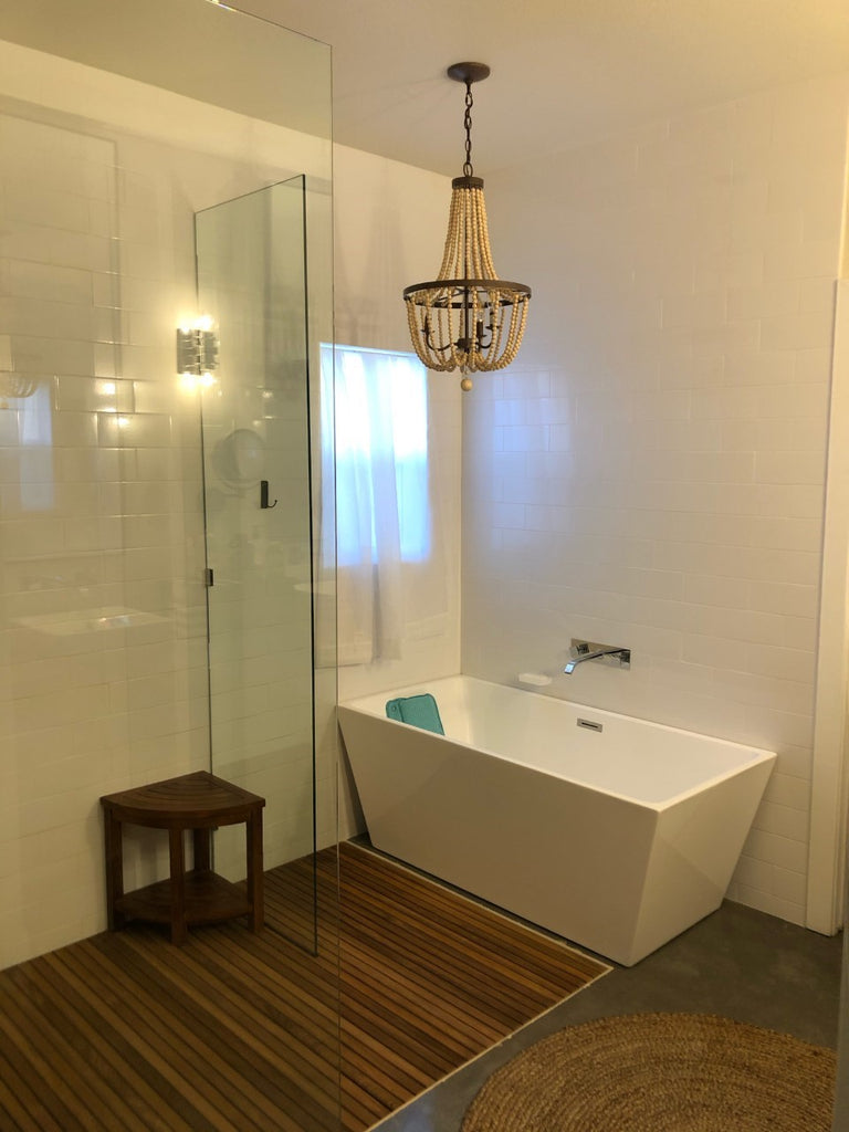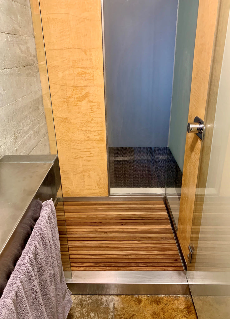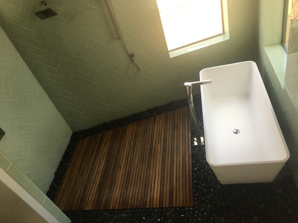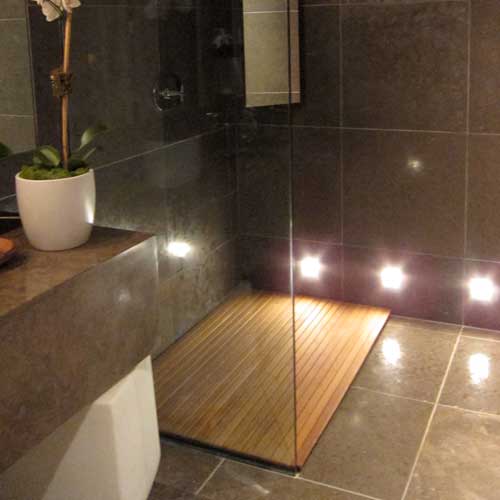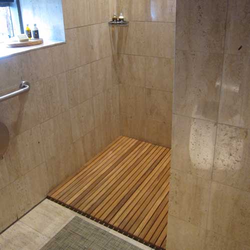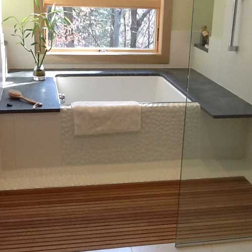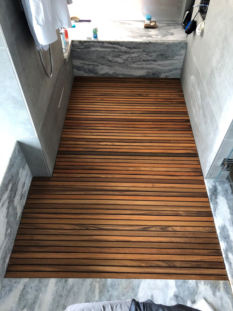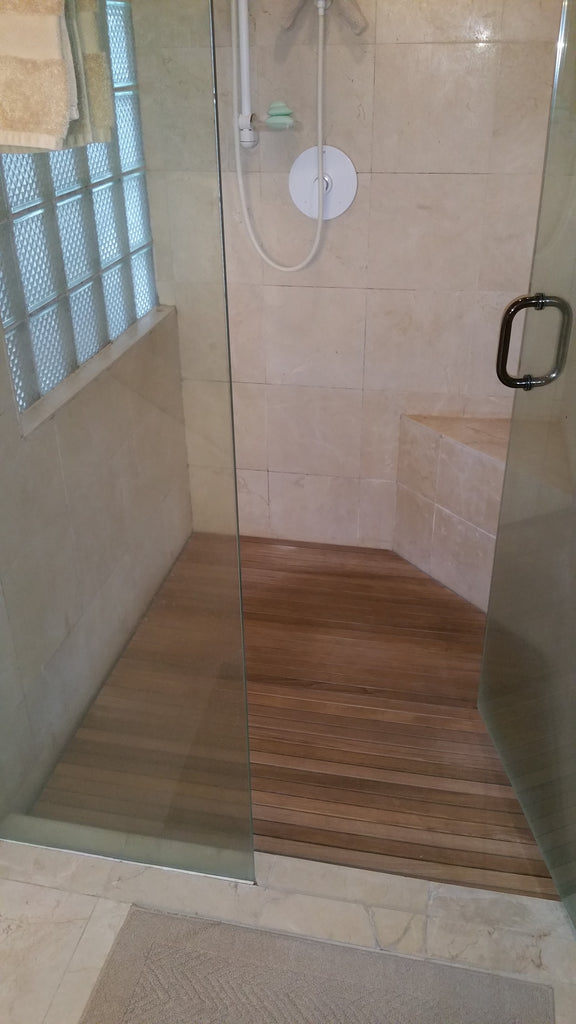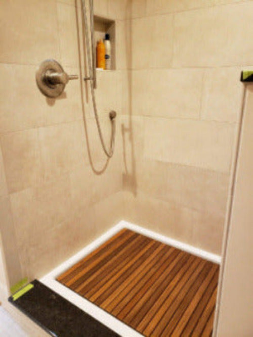 Stock mats are built to pre-selected sizes that have been most requested by our customers. Stock mats are great for poolside or bathroom drying-off areas and make a great, bacteria resistant alternative to traditional cloth bath mats. Custom mats are for customers who want a mat built specifically to fit the inside of their shower, or any other space where they desire the comfort, warmth and beauty of teak. Custom mats can also be built any size and can conform to odd shapes and curves.