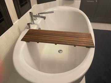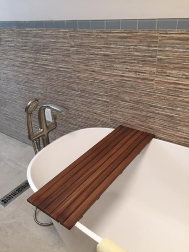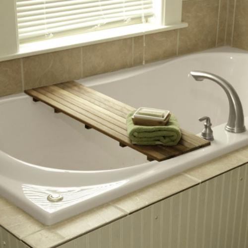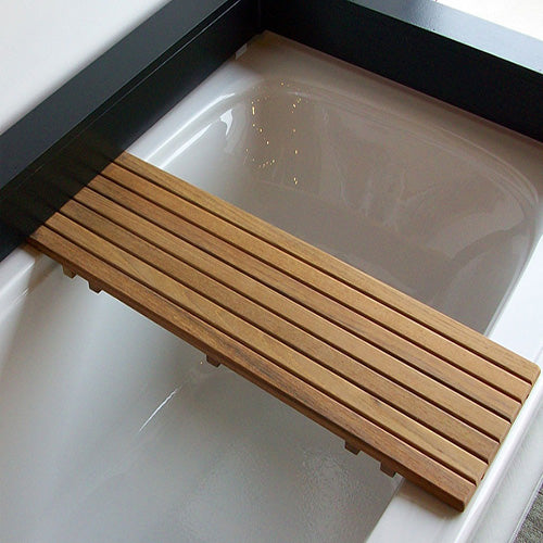 This fully adjustable teak bath bench fits any tub with an opening ranging from 20-1/4" up to 28-1/2". The teak bathtub shelf measures 9-1/2" wide x 30 1/2" long. The underside of the seat incorporates adjustable brackets so it can be firmly mounted in almost any tub. Use it as a seat or to hold bath accessories while bathing. Or browse from our other teak shower seats for more.