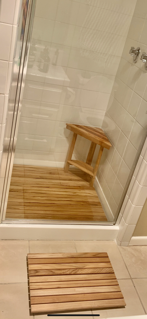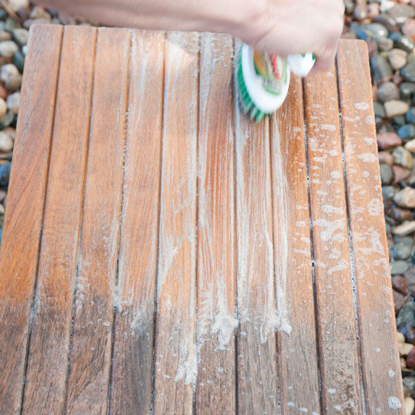 Restore an original finish to your teak bath mat or shower bench with Teak Clean, a Teakworks4u exclusive liquid solution. This teak cleaning kit has everything you need. Our teak cleaner is always fresh and full strength. Contents include 8 oz. Teak Cleaning Solution, 8 oz. Teak Conditioning Oil, Nitrile Gloves, Teak Cleaning Brush, Stainless Steel Scrubber, Teak Oiling Brush, Washable Ra. Complement your purchase with teak finishing oil today.